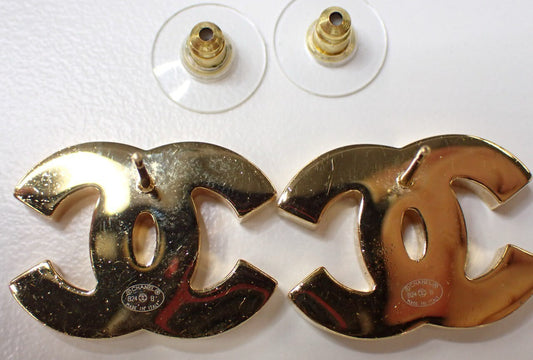 Chanel 2024 CC Logo Enamel Stud Earrings (Black & Gold)