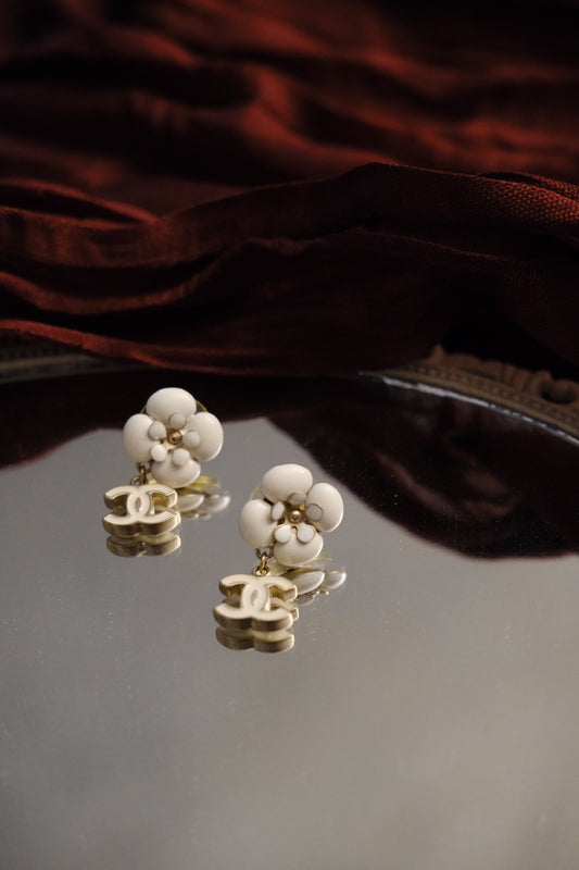 Chanel 2006 Vintage Camellia CC Drop Earrings