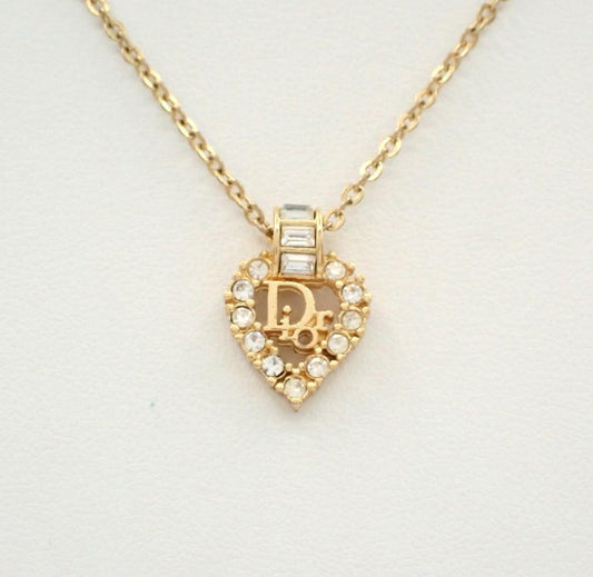 Vintage Dior Gold Wheel Heart Crystal Necklace