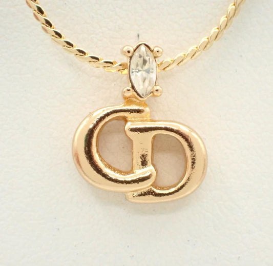 Vintage Dior Thick Silver Crystal Logo Necklace