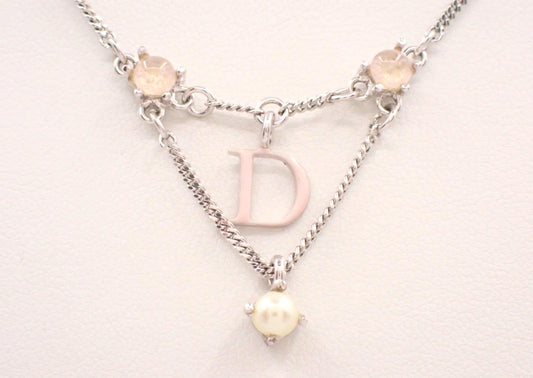 Dior 2010s Pink “D” Charm Pearl & Crystal Necklace
