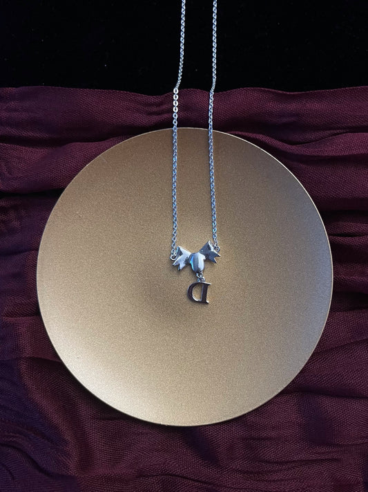 Vintage Dior Silver Bow & Crystal 'D’ Logo Pendant Necklace
