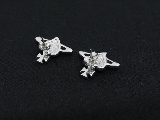 Vivienne Westwood Silver Cosmic Heart Crystal Stud Earrings