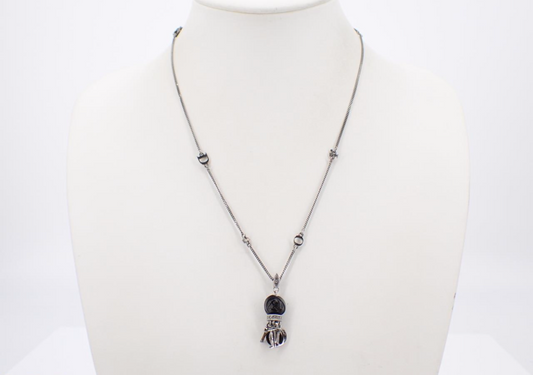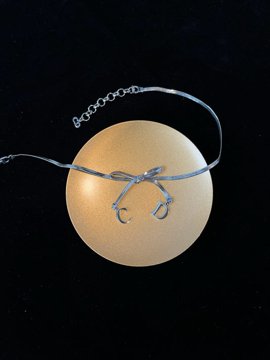 Dior Vintage Silver Ribbon "CD" Charm Necklace