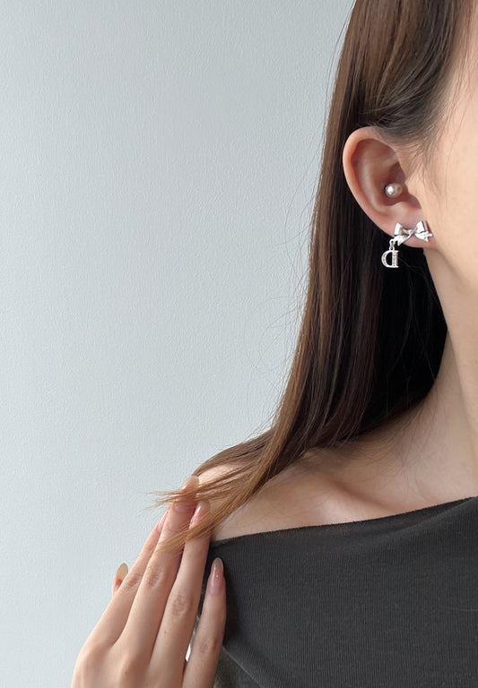 Dior Vintage Bow & Crystal "D" Drop Earrings