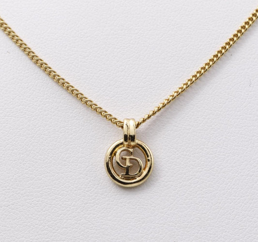 Dior Vintage Mini Gold-Tone Logo Medallion Necklace