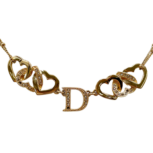 Dior Vintage Gold-Tone Crystal Heart & “D” Logo Necklace