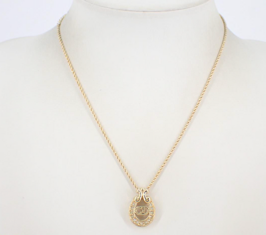 Dior Vintage Crystal Logo Pendant Necklace with Clover Charm