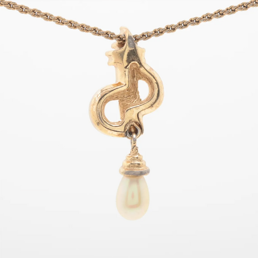 Dior Vintage Crown Logo Pearl Drop Necklace