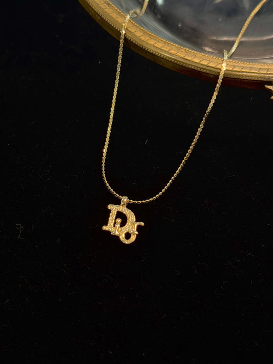 Dior Vintage Silver-Tone Logo Letter Necklace