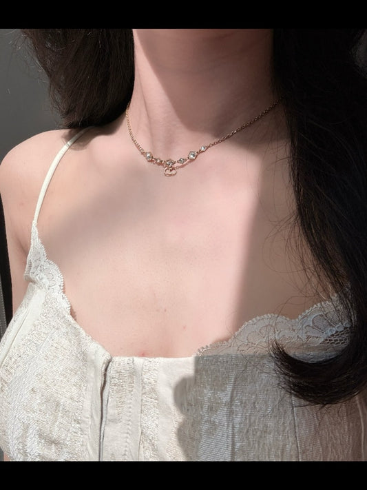 Dior Vintage Gold-Tone Script Logo Necklace with Crystal Accent