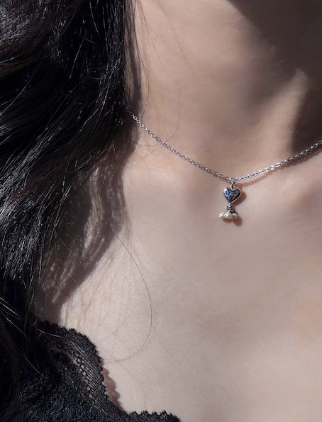 Dior Vintage Silver Small Heart Necklace with Pearl Drop Charms