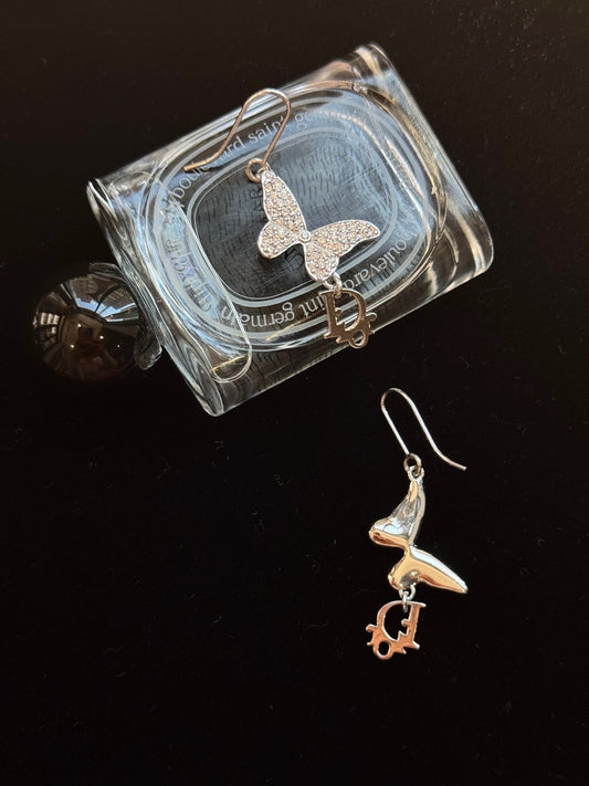 Vintage Dior Silver Crystal CD Clip-On Earrings