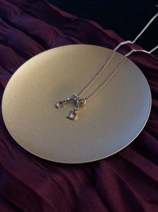 Dior Vintage Black & Gold Crystal “CD” Pendant Necklace