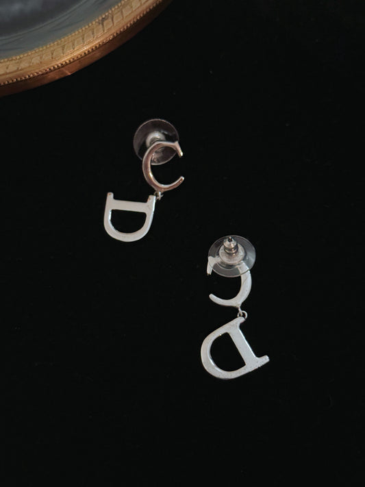 Dior Vintage Silver “CD” Drop Stud Earrings