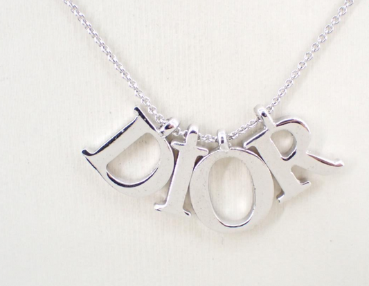 Dior Vintage Silver-Tone Logo Letter Necklace