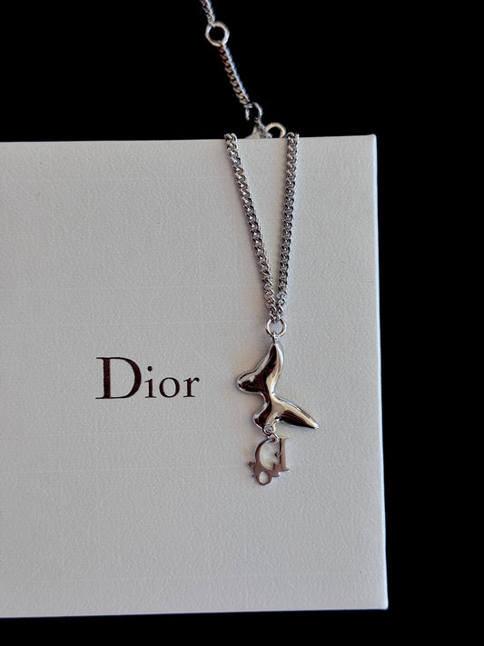 Dior Vintage Crystal Butterfly “D” Charm Necklace