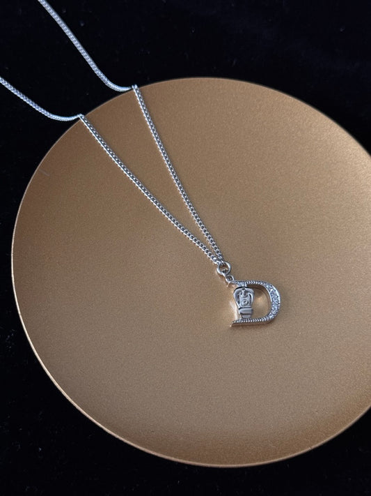 Vintage Dior Silver "D" Crystal Pendant Necklace
