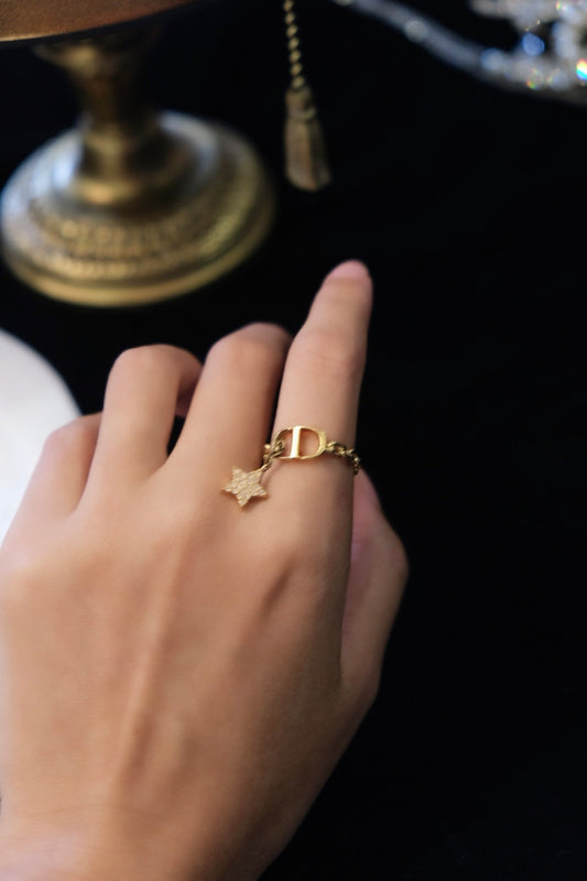 Dior Christian Petit CD Ring Gold Rhinestone Star