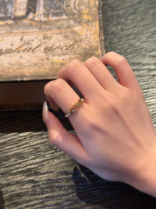 Dior Vintage CD Monogram Statement Ring – Gold-Tone with Crystal Accents