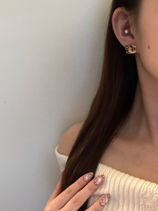 Chanel 2003 Vintage Enamel Camellia CC Logo Earrings