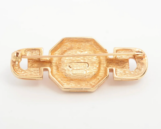 1980s Dior Vintage Gold-Tone Crystal & Ruby Cabochon Brooch