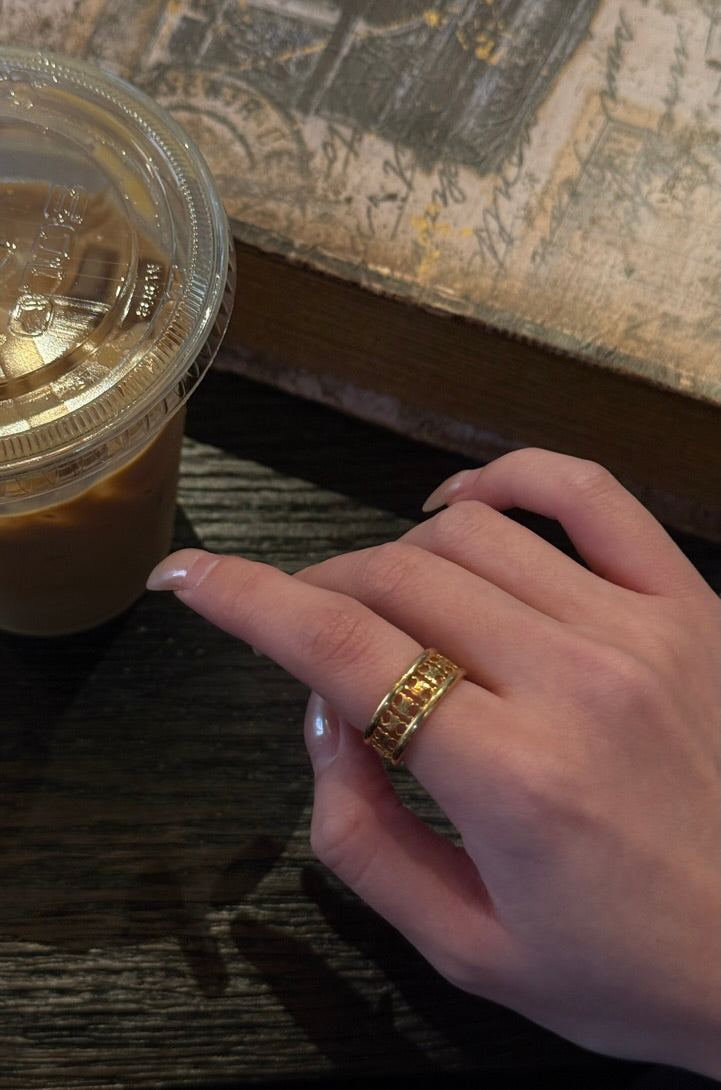 This statement Celine ring features the brand's iconic Triomphe logo in a cutout design on a bold gold-tone band. A timeless piece that adds Parisian elegance and edge to your everyday style.