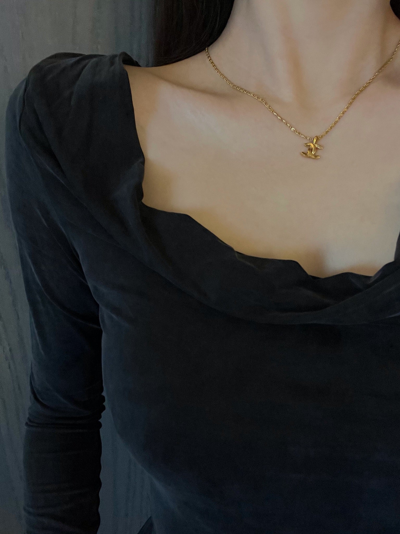 A timeless vintage Chanel necklace from 1982 featuring the iconic double C logo in durable gold-plated finish. Elegant, minimal, and made for everyday wear — even suitable for wearing in the shower. A true collectible classic with lasting charm.