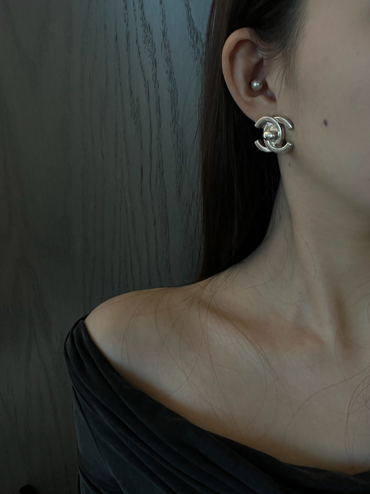 Elegant 1996 vintage Chanel earrings featuring a refined satchel buckle design crafted in silver-plated metal. Timeless and sophisticated, these clip-ons exude understated charm — a classic piece that never goes out of style.