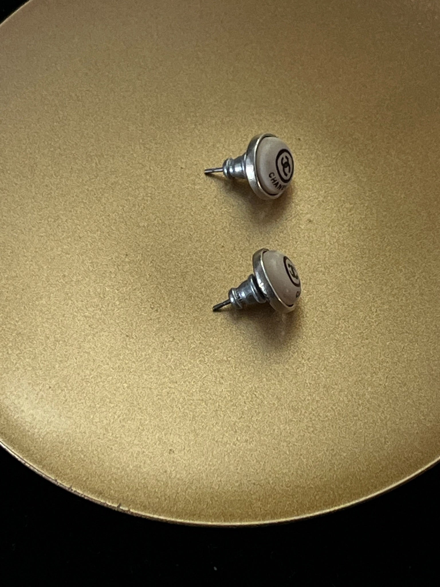 Chanel 2000 Cream White CC Sweet Bean Stud Earrings