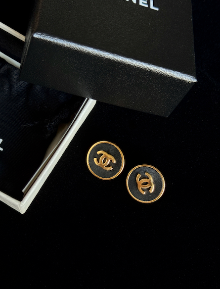 These Chanel earrings combine supple black leather with gold-plated round frames, featuring the iconic interlocking CC logo at the center. Understated yet luxurious, they exude effortless Parisian charm and timeless appeal.