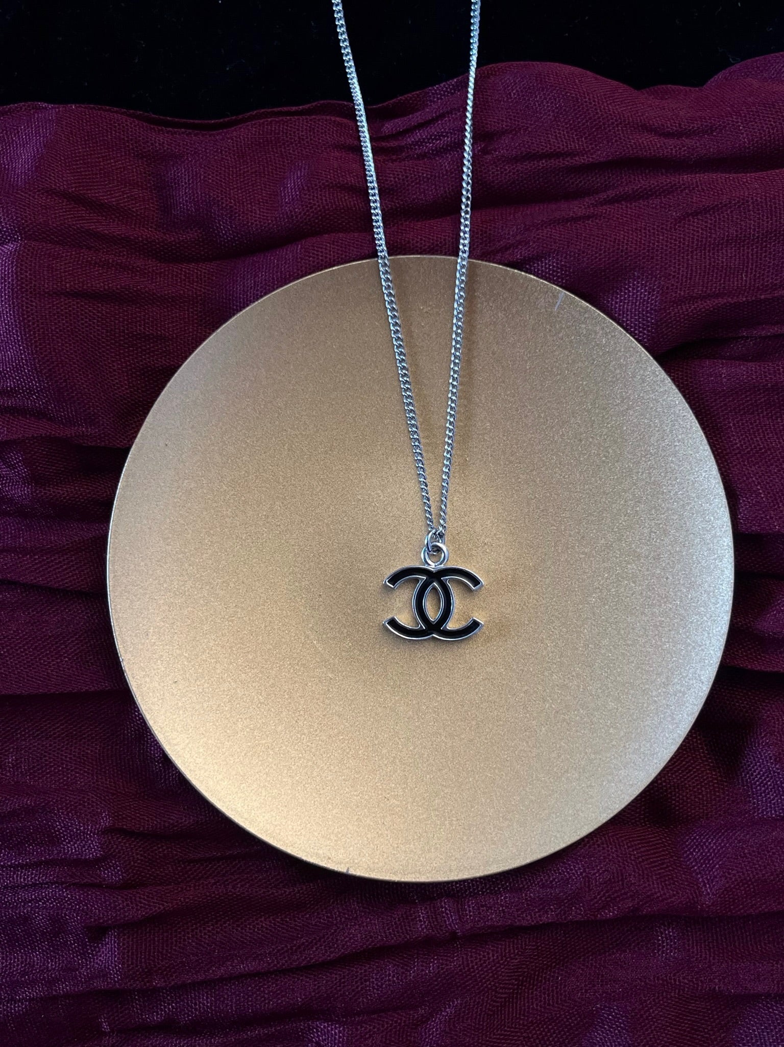 A timeless vintage Chanel necklace from 2007 featuring the iconic double C logo in a chic black and silver tone. Designed for everyday wear, this versatile piece adds understated elegance and effortless style to any outfit.