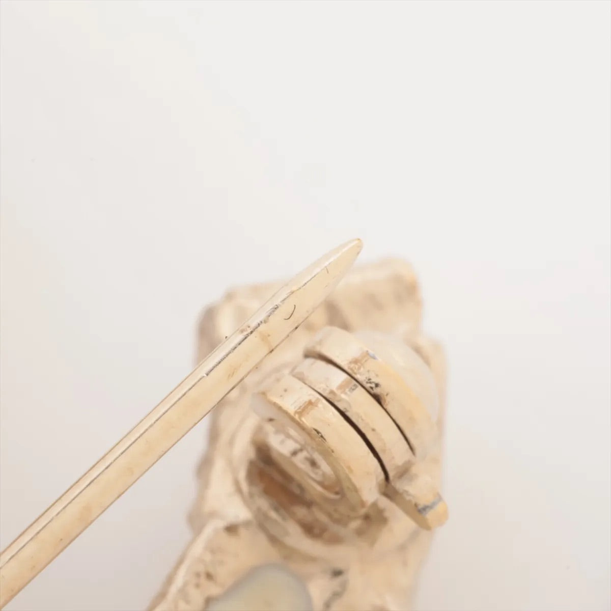 - Material: Gold-tone metal with white enamel accents