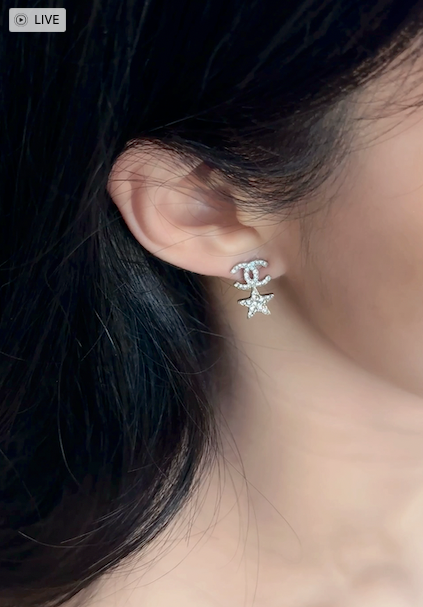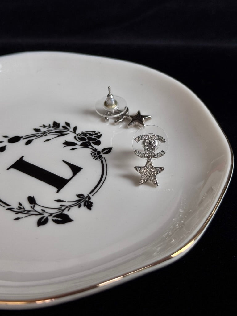Chanel 2020 Crystal Star & CC Drop Earrings