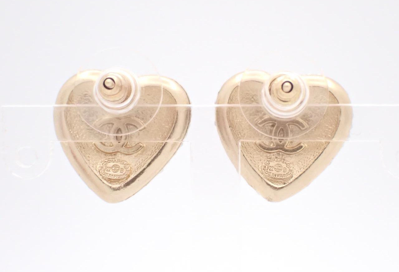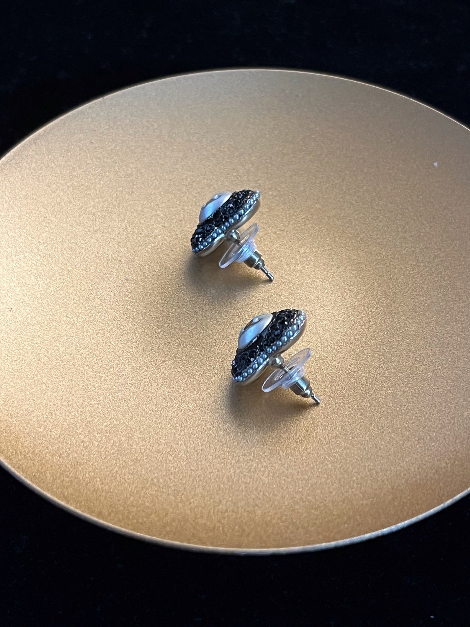 - Design: Heart-shaped CC stud earrings with dark crystal “night sparkle” effect