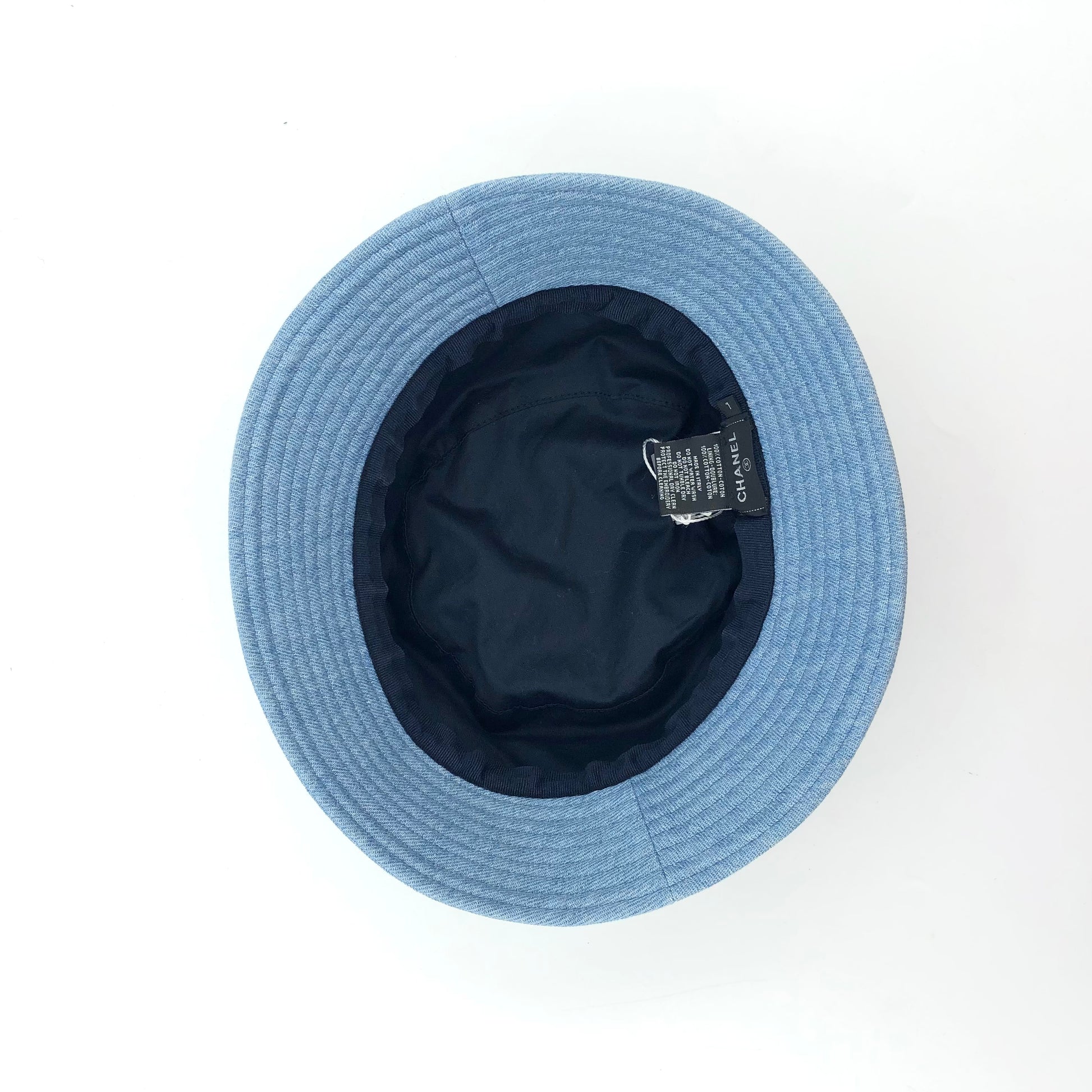 Chanel 2022 Light Blue Denim Bucket Hat with Crystal Logo