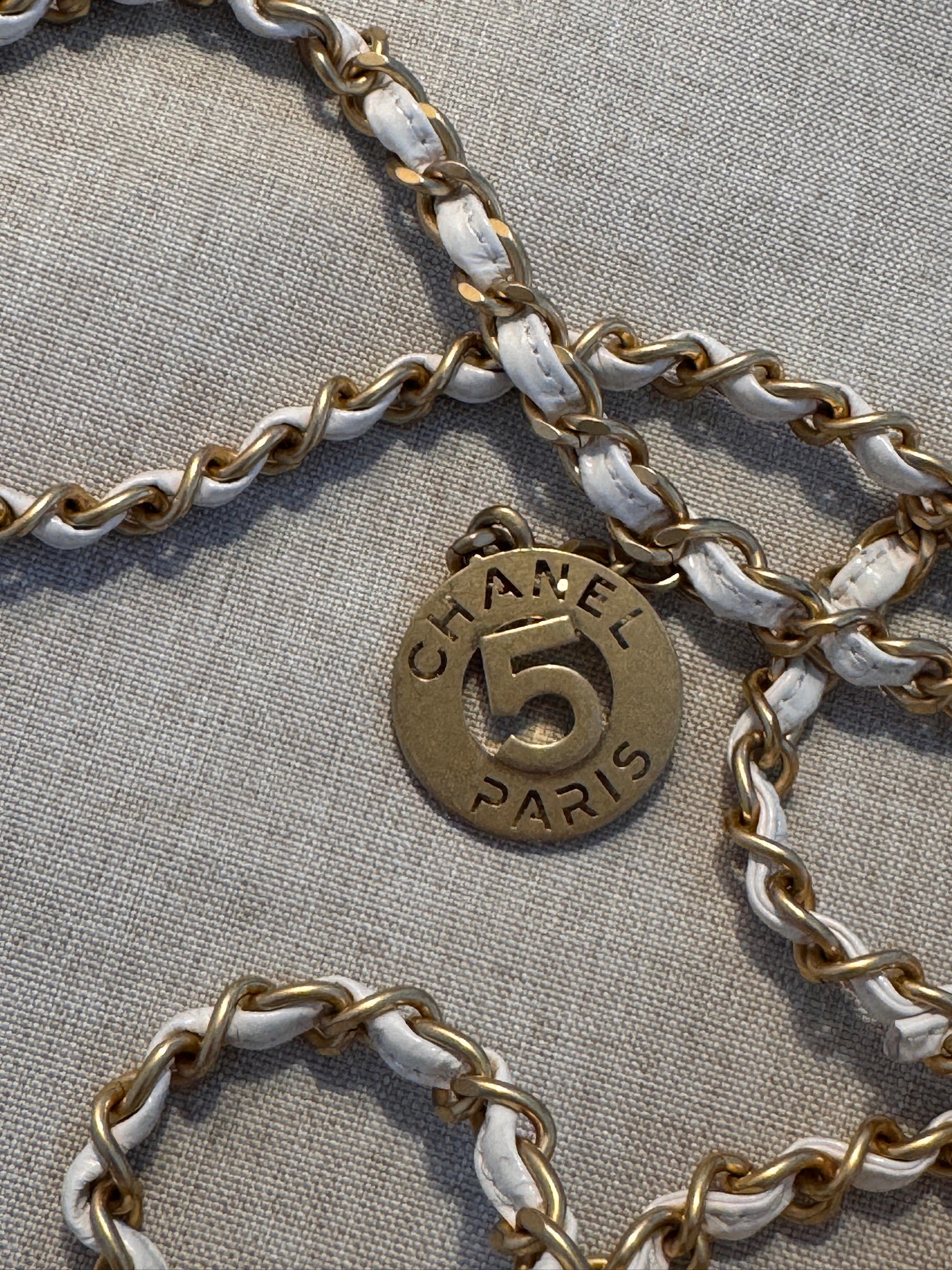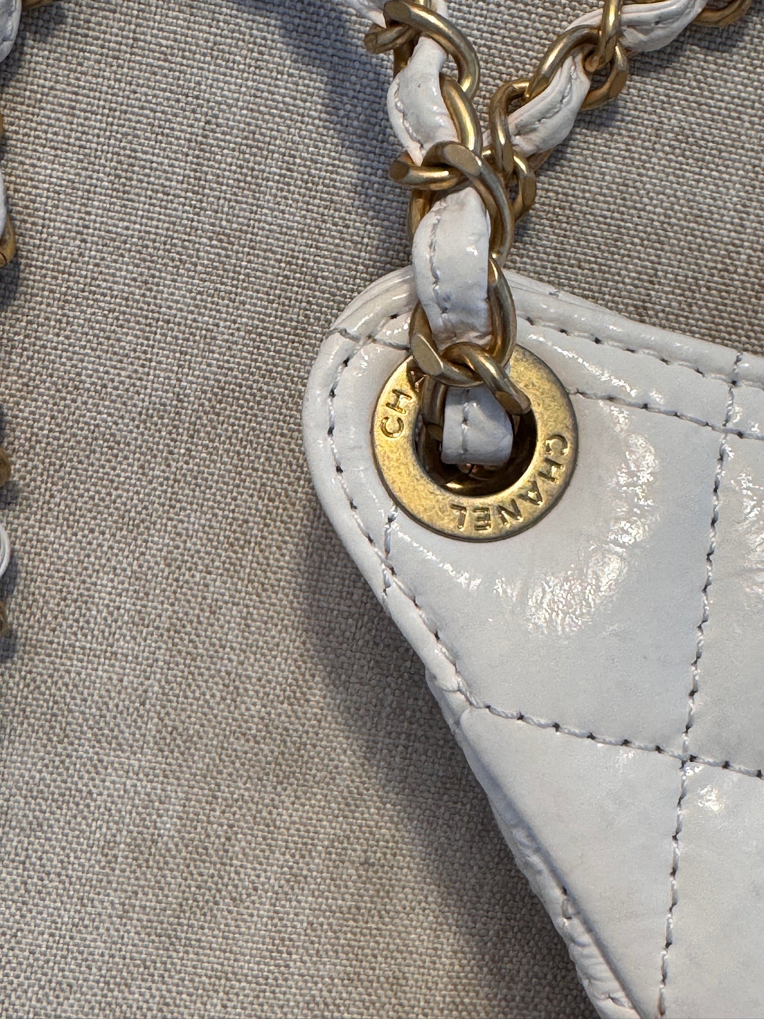 - White quilted leather with gold-tone CC logo