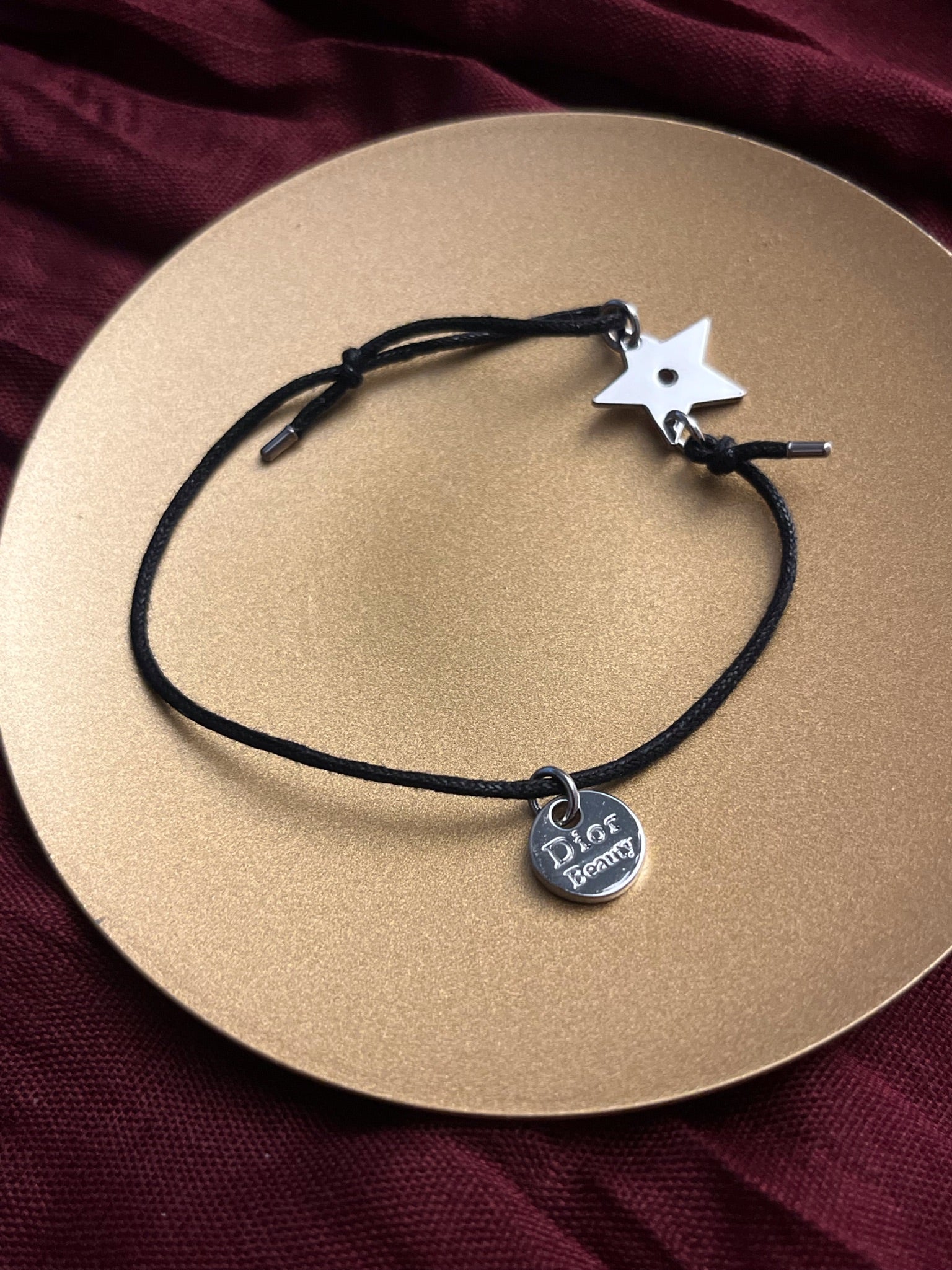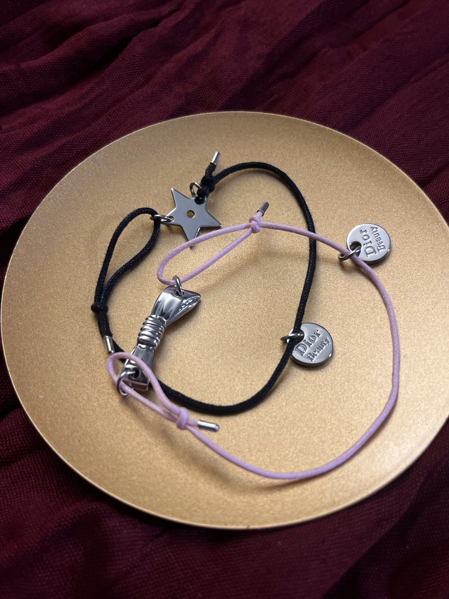 Dior Adjustable Cord Bracelet Set – Black Star & Pink Hand Charm