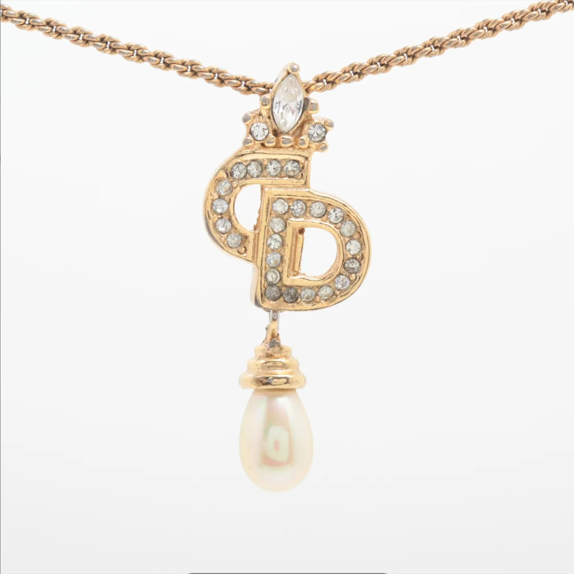 Dior Vintage Crown Logo Pearl Drop Necklace