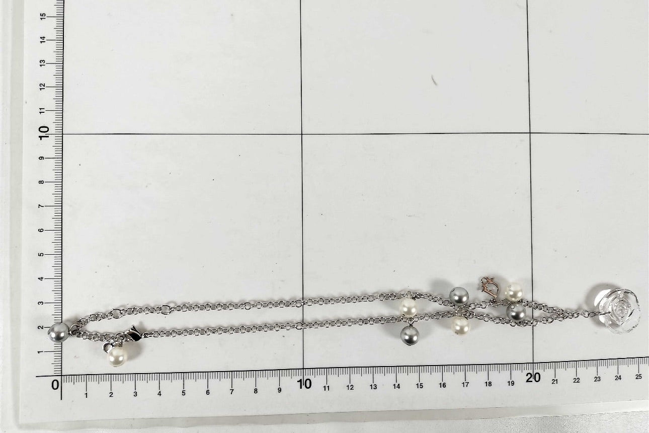 Dior Vintage Glass Rose & Pearl Charm Necklace (Silver Tone)
