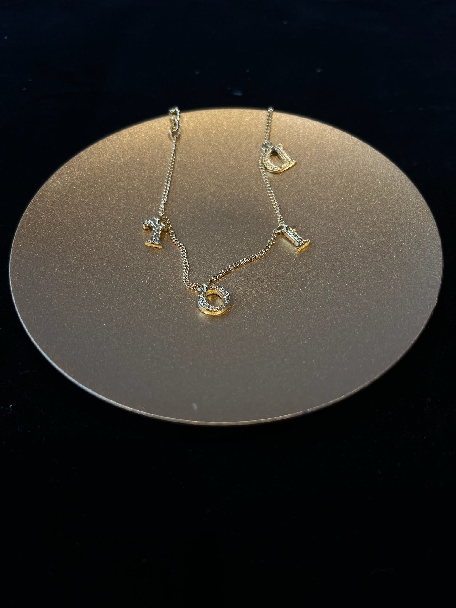 Dior Vintage Gold-Tone&Crystal Logo Chain Bracelet