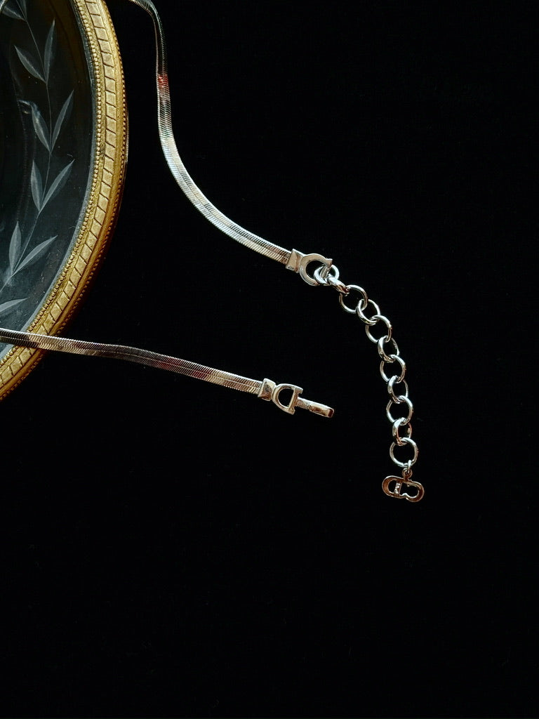 Dior Vintage Silver Ribbon "CD" Charm Necklace