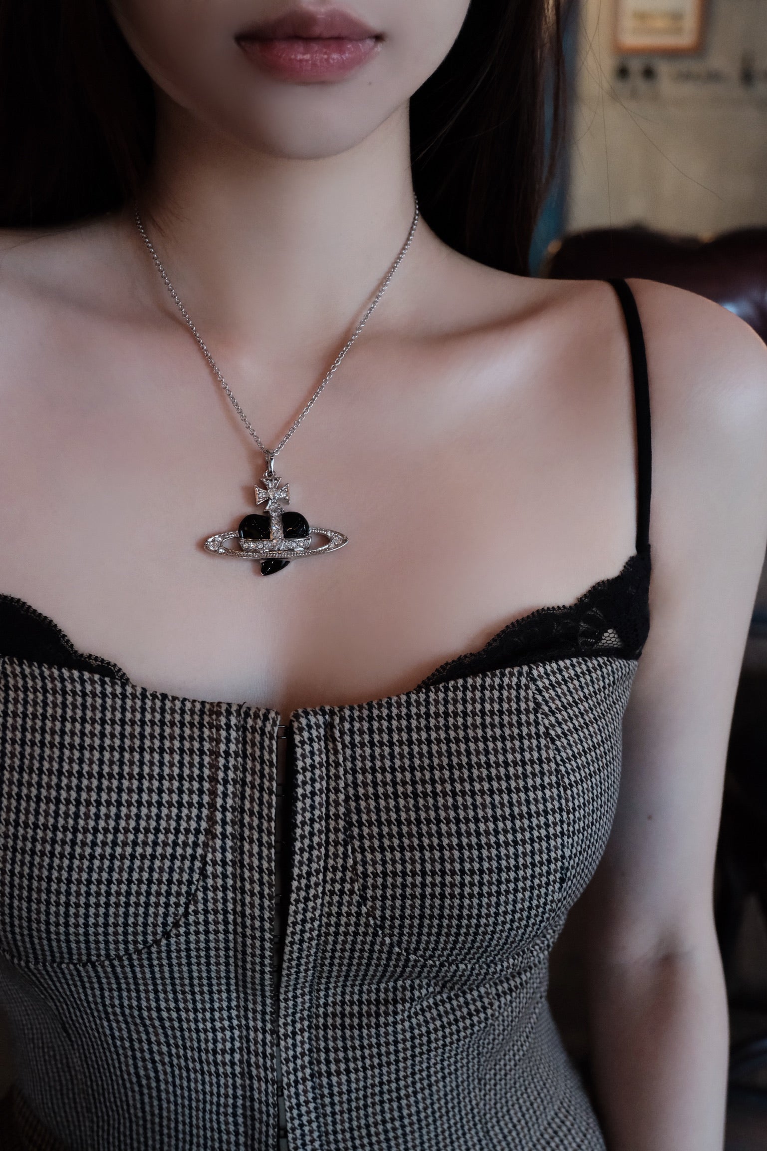 Vivienne Westwood Vintage Black Heart Giant Orb Pendant Necklace