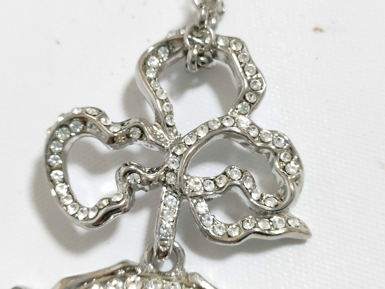 A striking archive statement from Vivienne Westwood, this vintage pendant features the iconic Orb logo encrusted in crystals, set atop a deep emerald-green faux cabochon. Wrapped in a heraldic serpent and topped with a Baroque bow, it’s both punk and princely—channeling Westwood’s signature rebellion-meets-regality aesthetic.