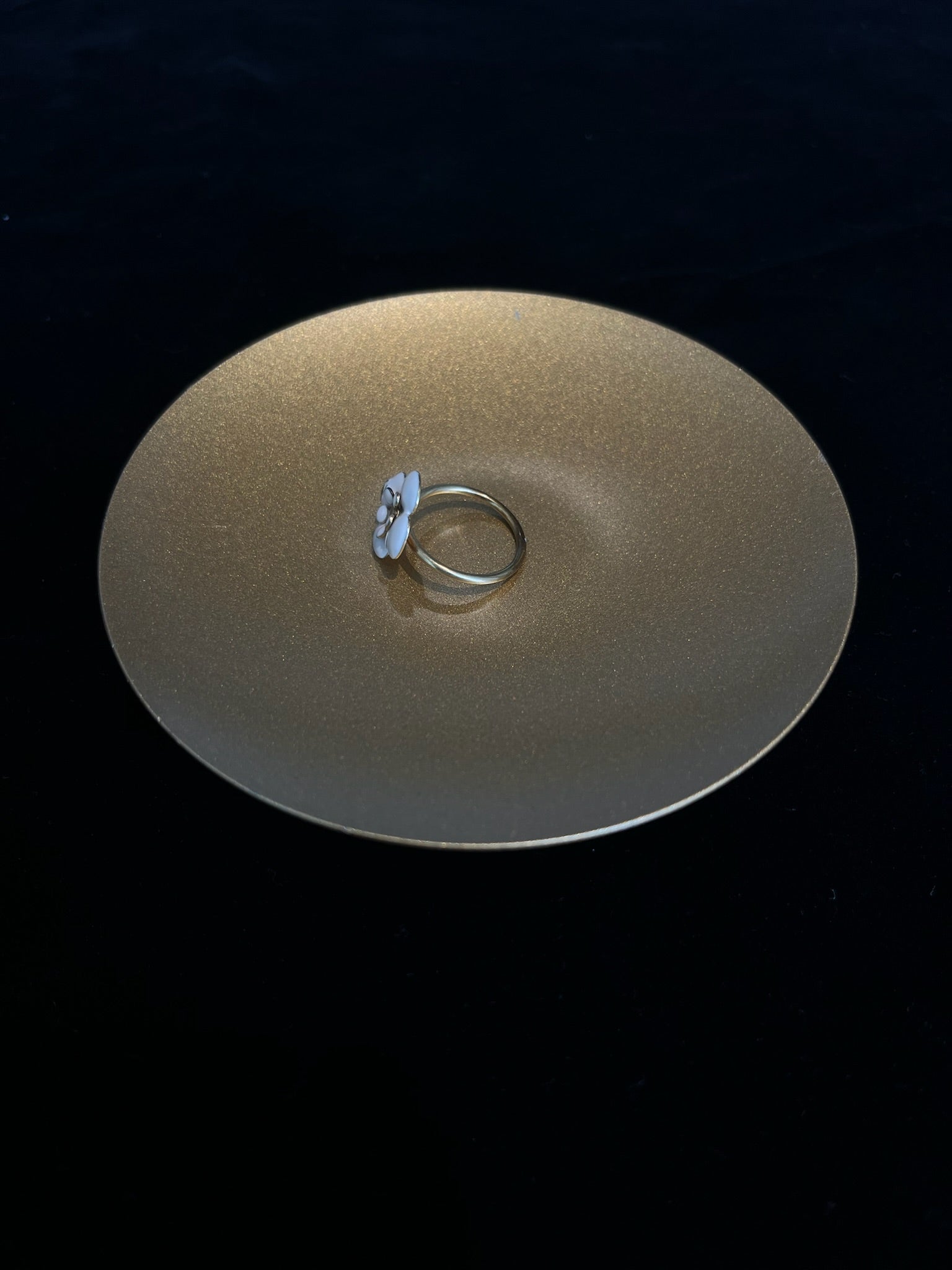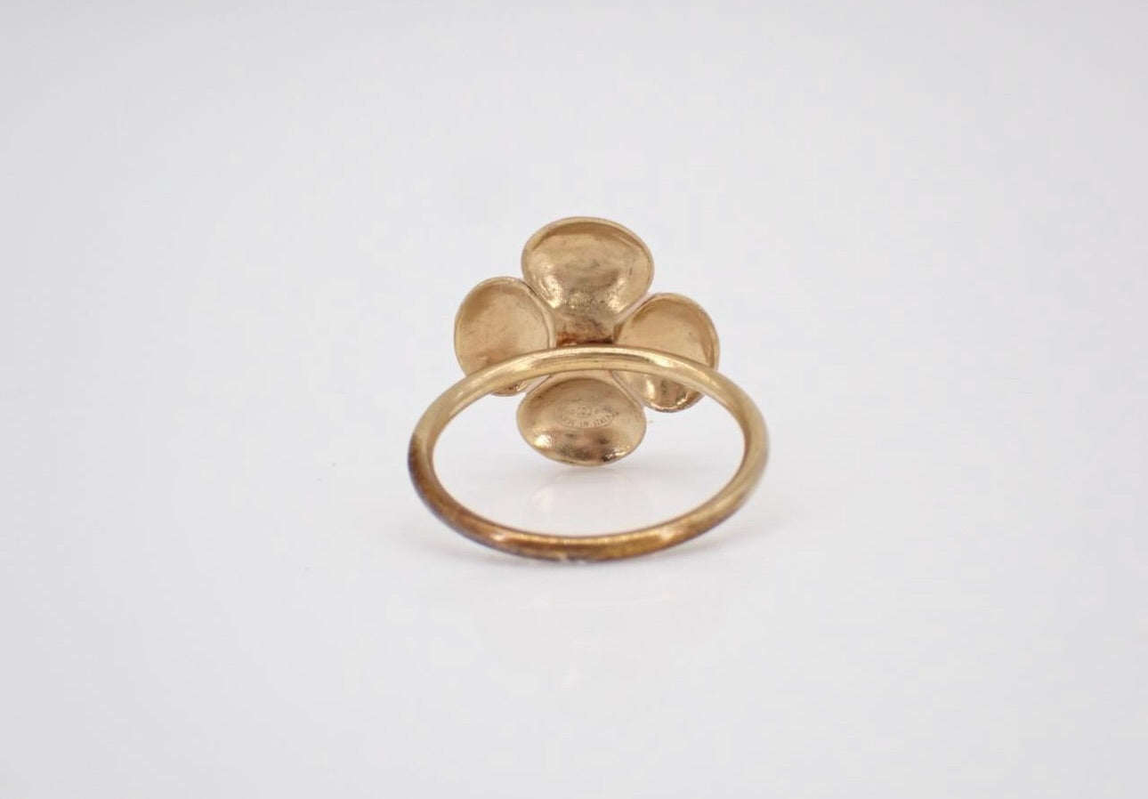 Vintage Chanel Cream Enamel Camellia Flower Ring