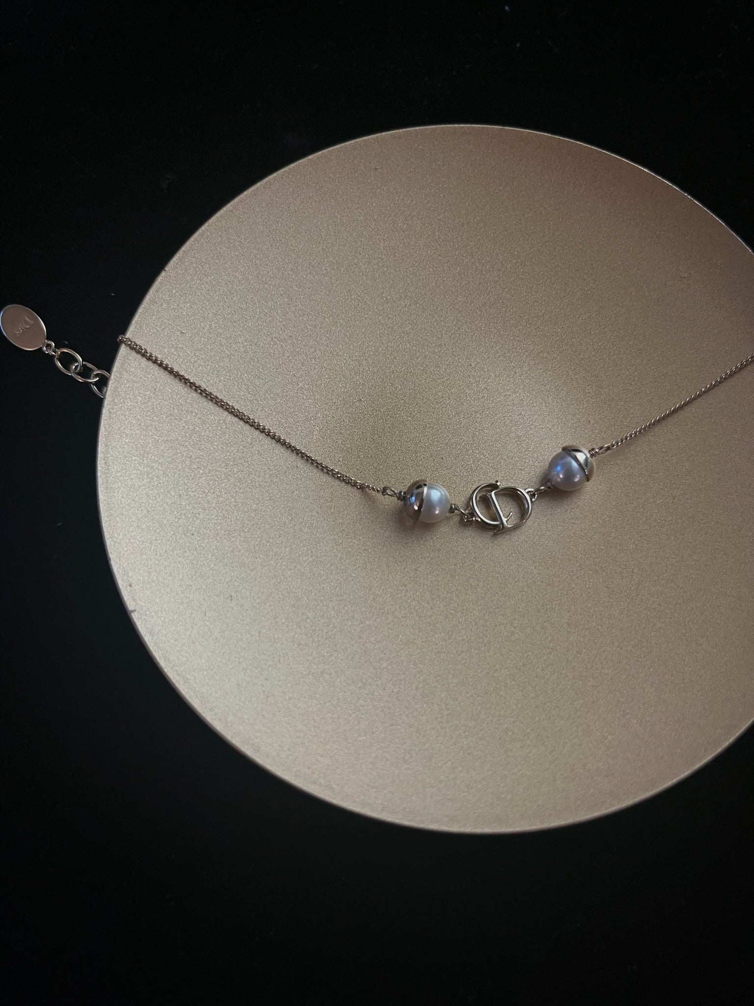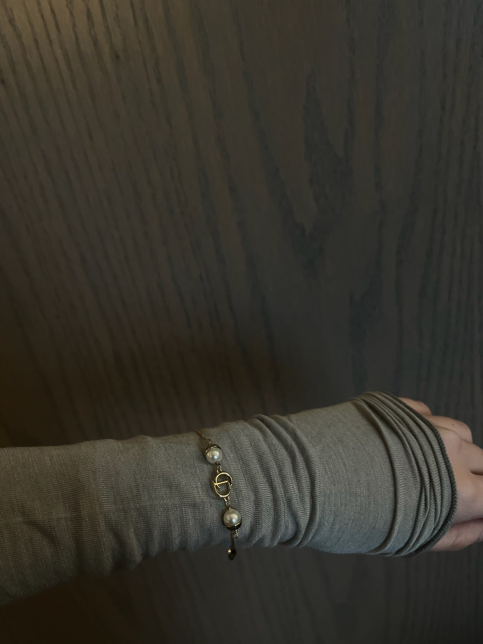A timeless Dior bracelet featuring luminous faux pearls paired with the iconic “CD” logo. Elegant, refined, and effortlessly feminine — a perfect everyday classic with a vintage touch.