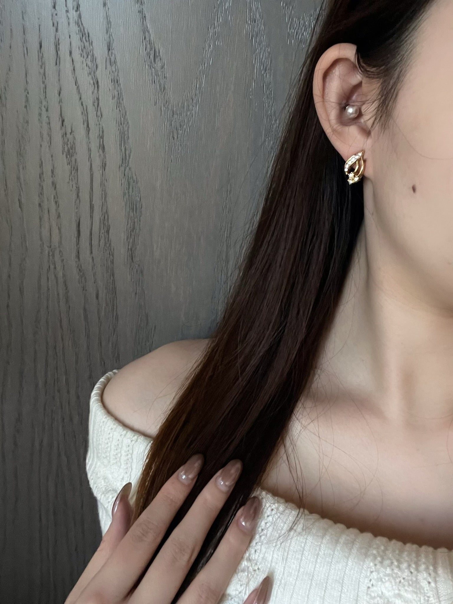 Elegant vintage Dior ear clips featuring intertwined gold-tone hoops accented with delicate crystal leaves. Sparkling yet refined — a versatile piece that adds effortless sophistication to any look.
