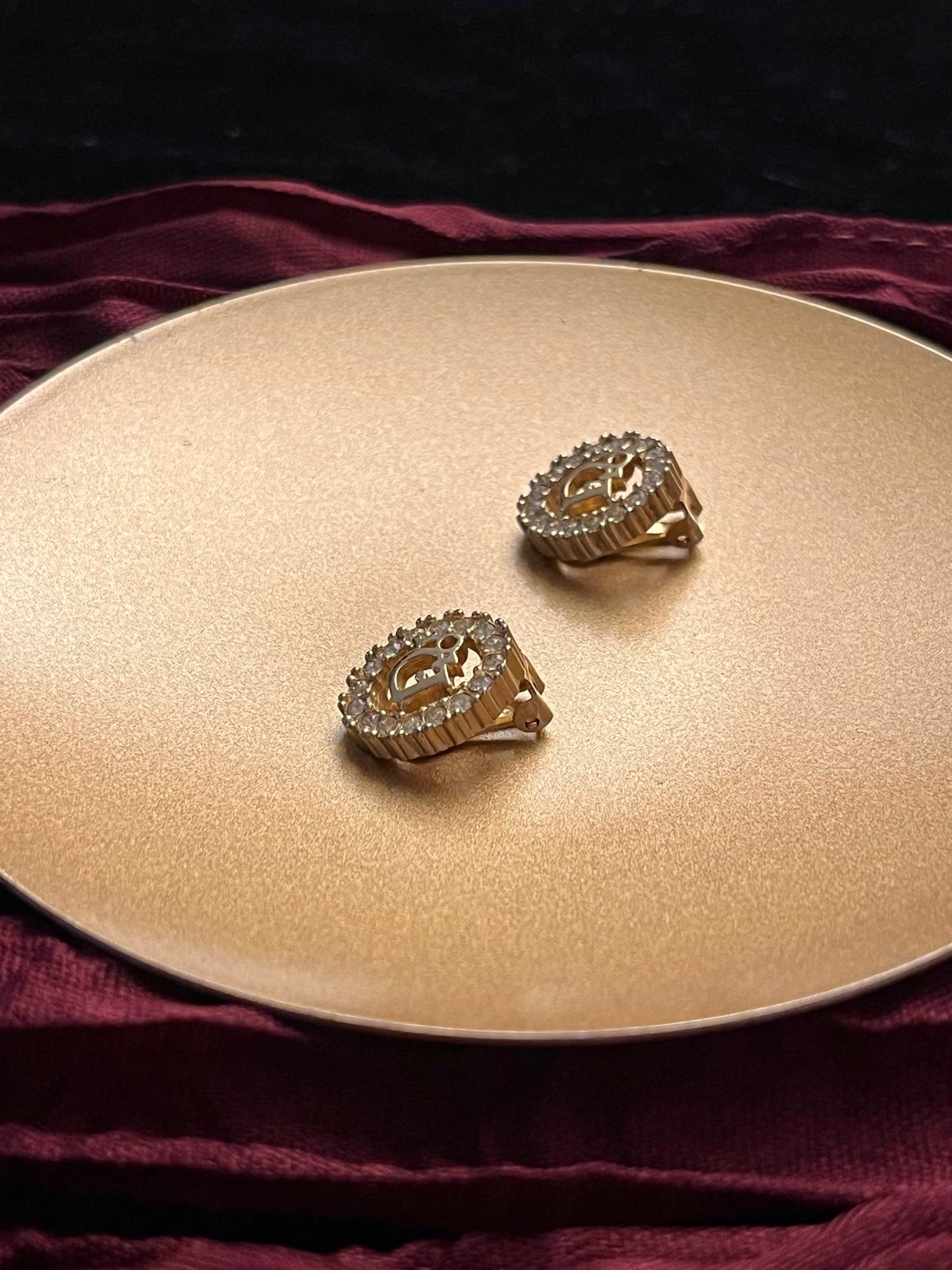 Vintage Dior Gold Pavé CD Logo Ear Clips