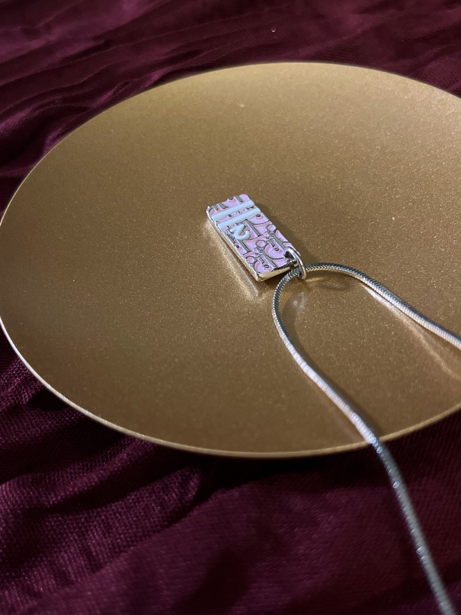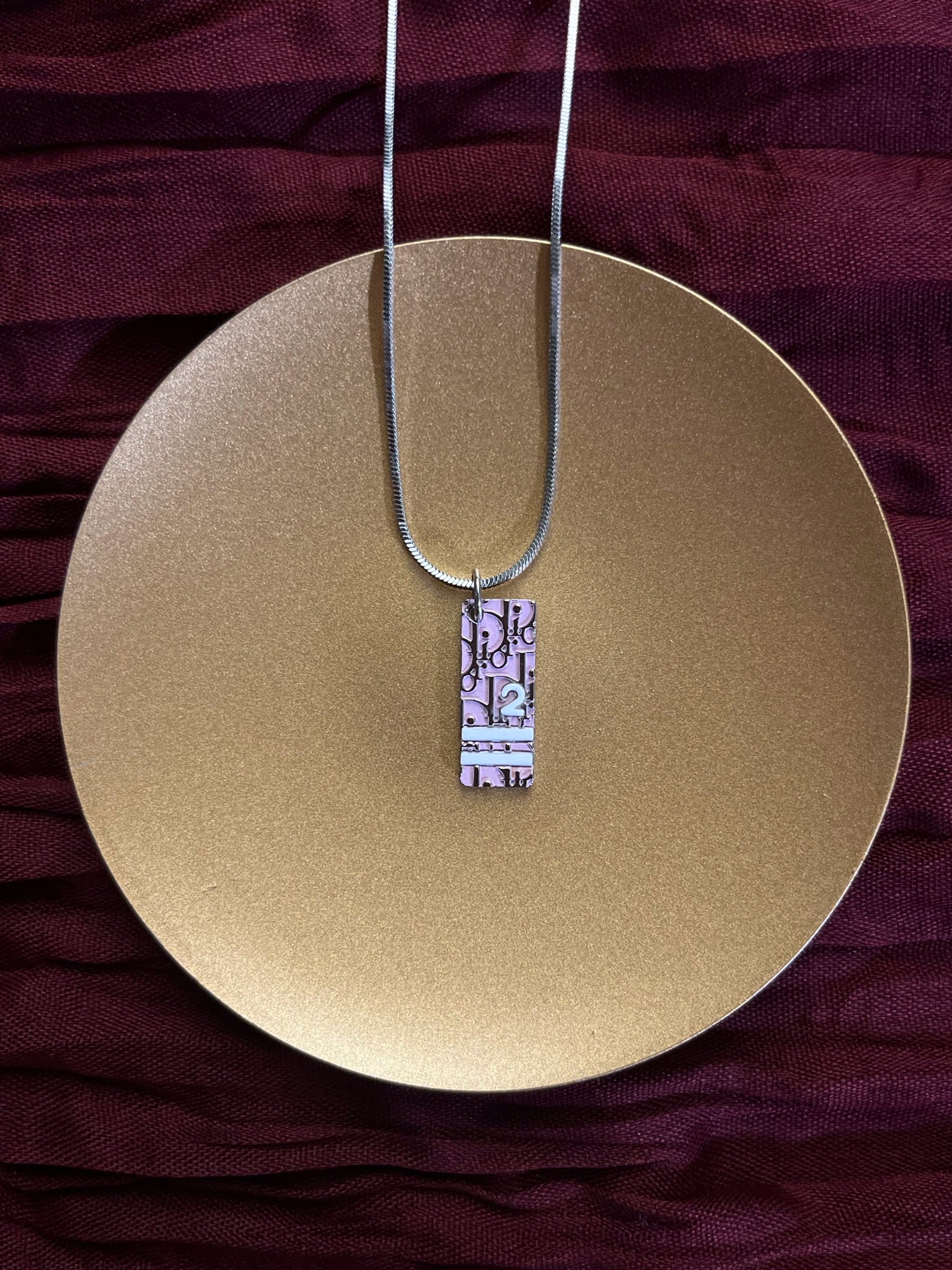 A standout vintage Dior necklace from the Rasafari Collection, featuring a playful pink sports tag pendant marked with the number “2.” Blending athletic inspiration with Dior’s signature elegance, this piece offers a fun yet fashion-forward statement. Eye-catching and unique, it’s perfect for adding a pop of color to any look.