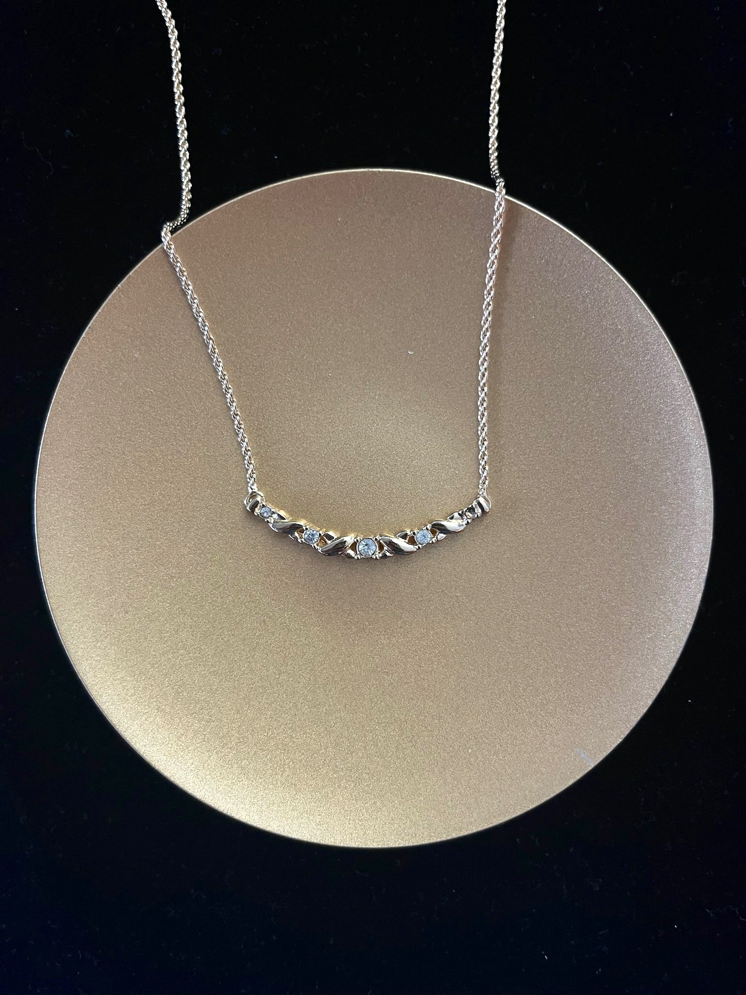A refined vintage Dior necklace featuring a graceful curved “smile” design adorned with sparkling crystals. Elegant, radiant, and versatile — perfect for adding a touch of understated glamour to any outfit.